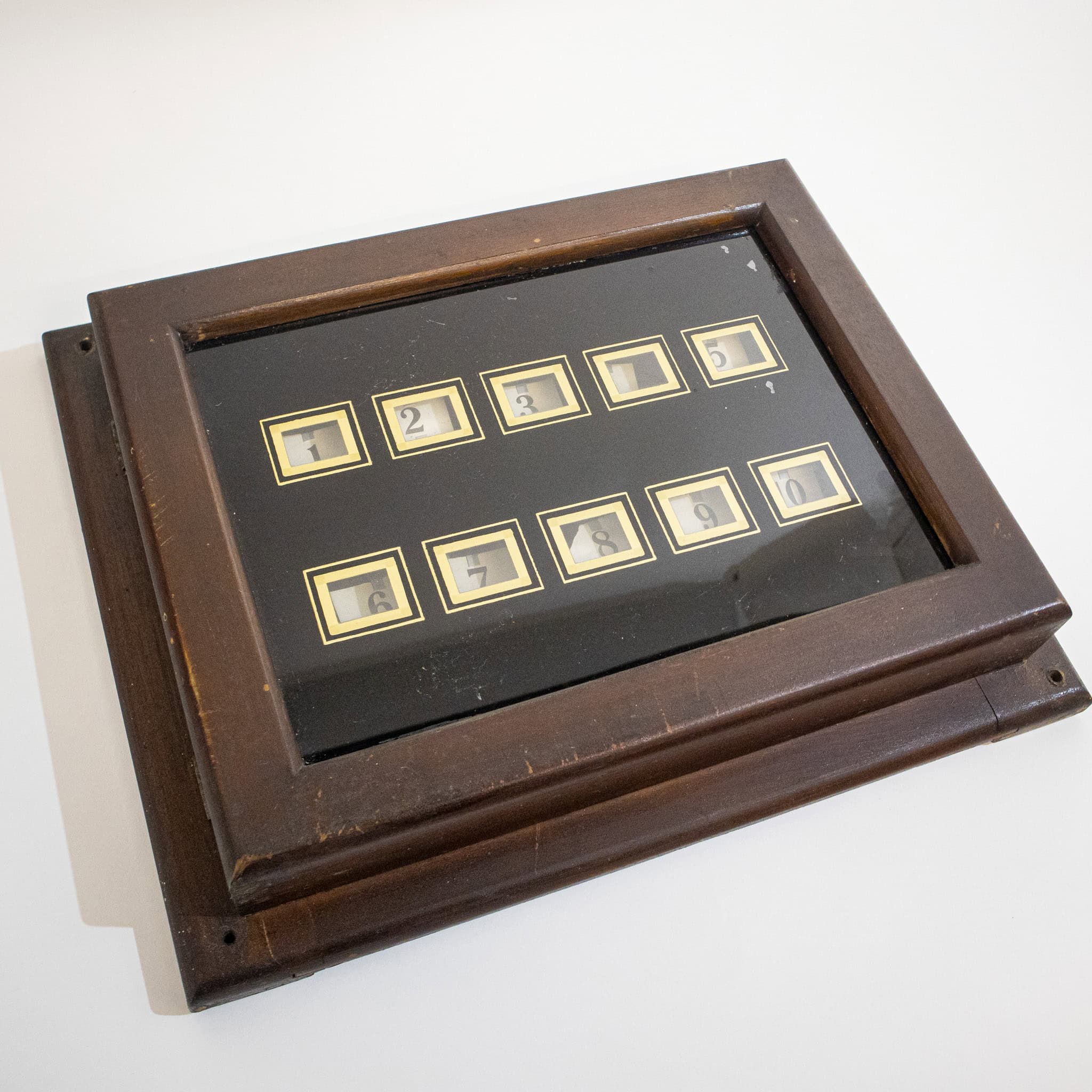 19th Century Servants Bell Box. Experience the allure of the late 19th century with this beautifully preserved Servants’ Bell Box, featuring ten numbered lines waiting to be delicately wired to the corresponding bells. Each line, numbered from 1 to 10, beckons to a bygone era when precision and elegance reigned supreme. With a touch of expert wiring, this set will once again ring with the grace and charm of a time long past, bringing a touch of nostalgia and sophistication to any setting.