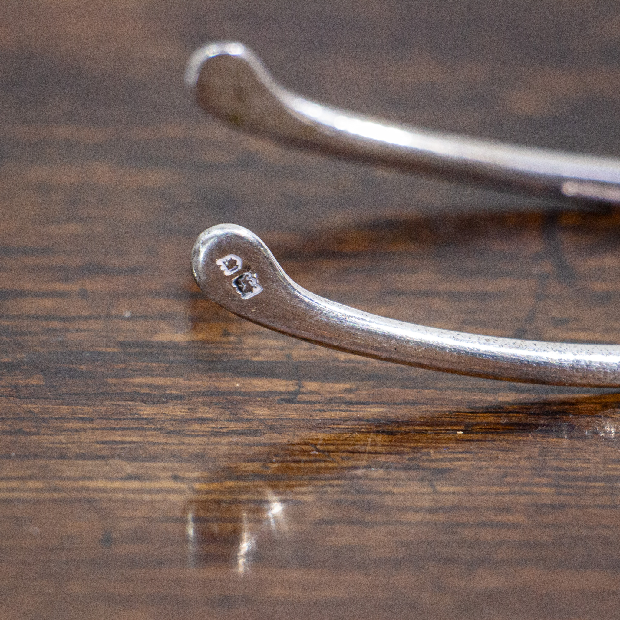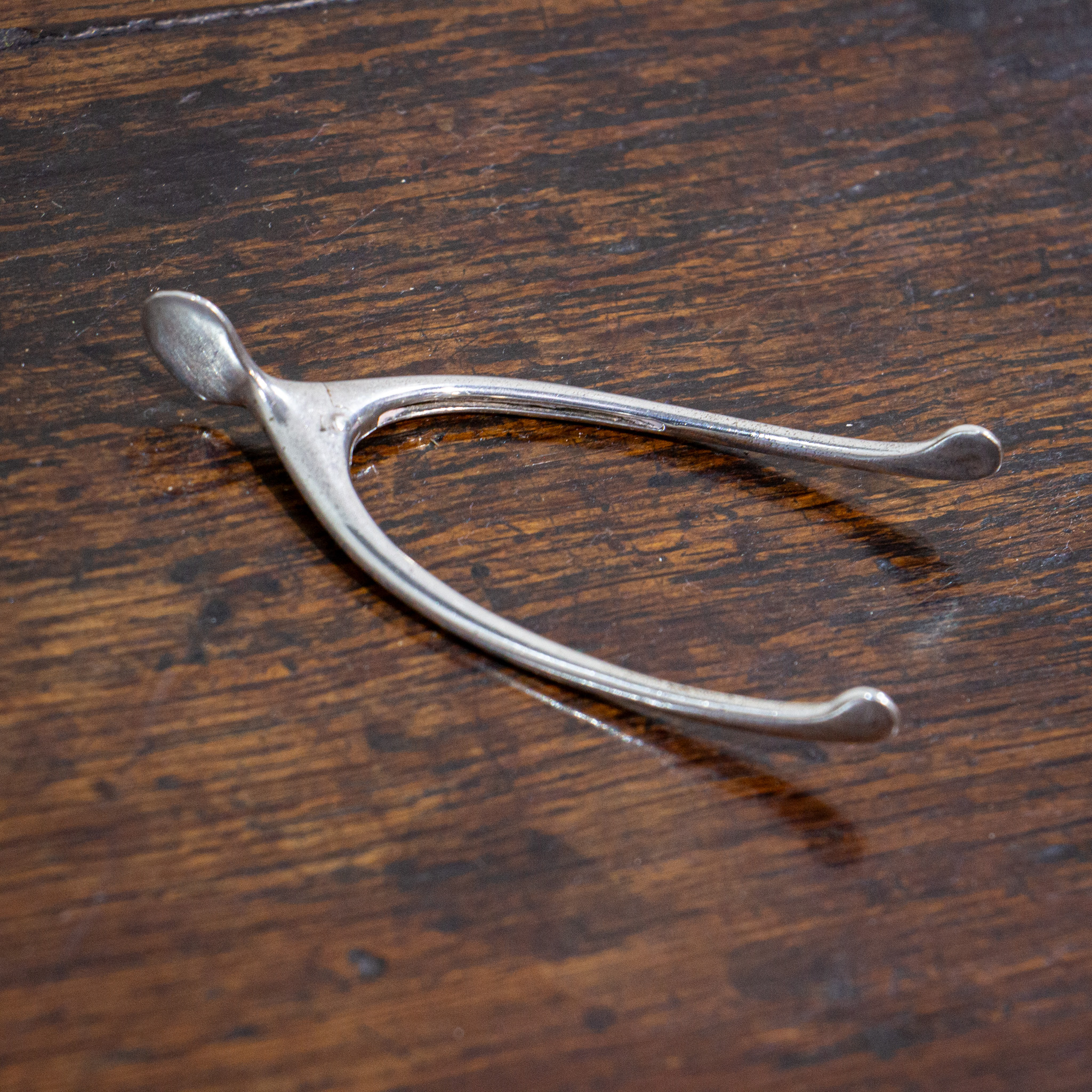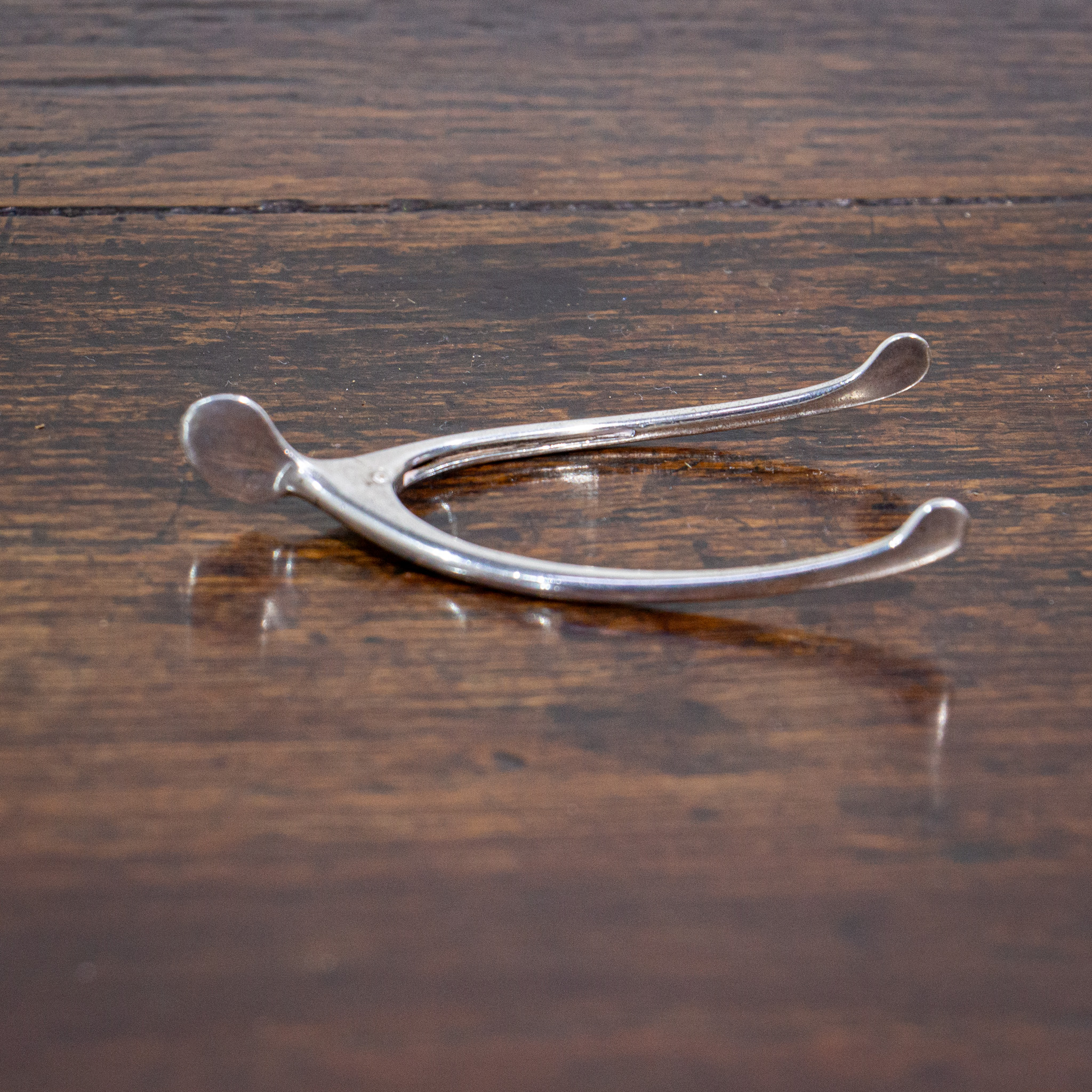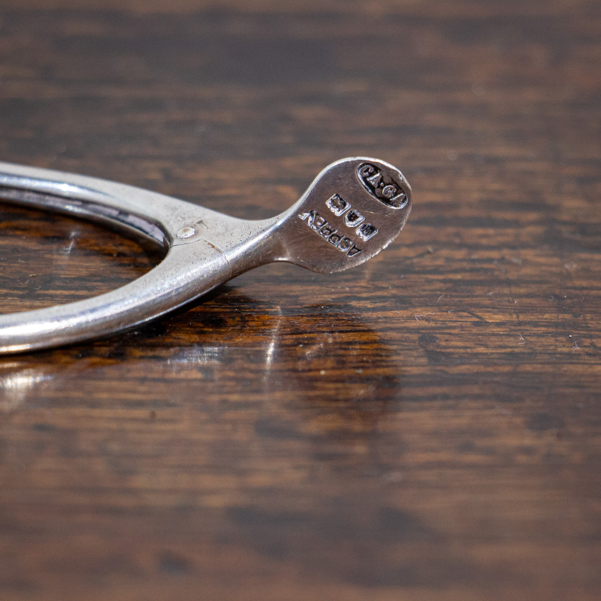 A novelty set of Edwardian silver sugar tongs in the form of a wishbone. The tongs have the renowned Aspreys mark which immediately shows the quality of the piece. The set are tightly sprung which indicate little use as does their fine condition. Hallmarked for London 1903. Weight 16 grams.