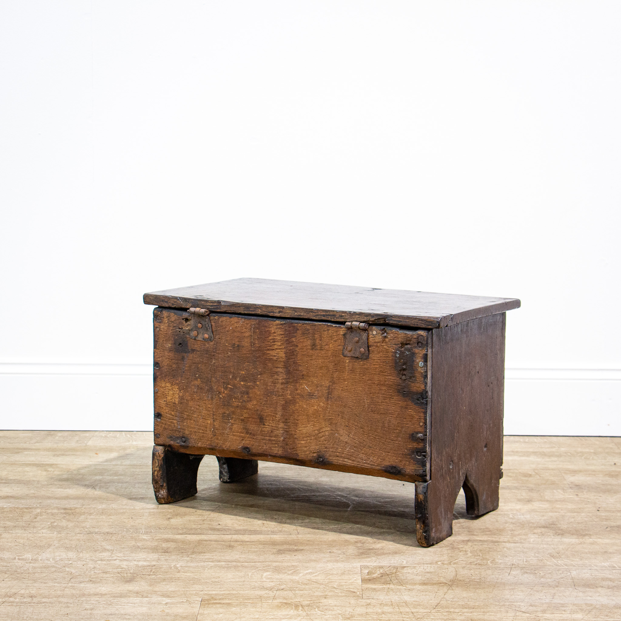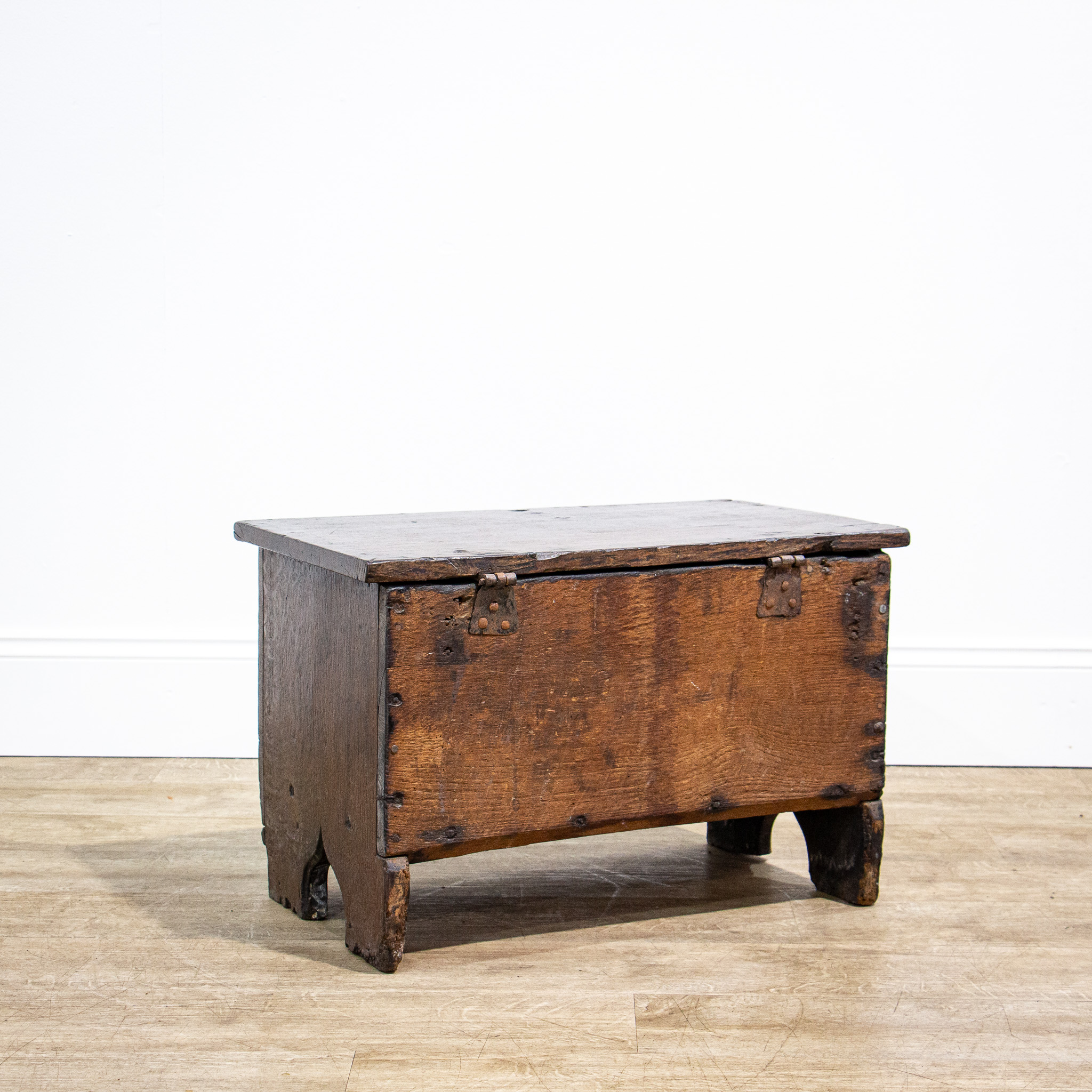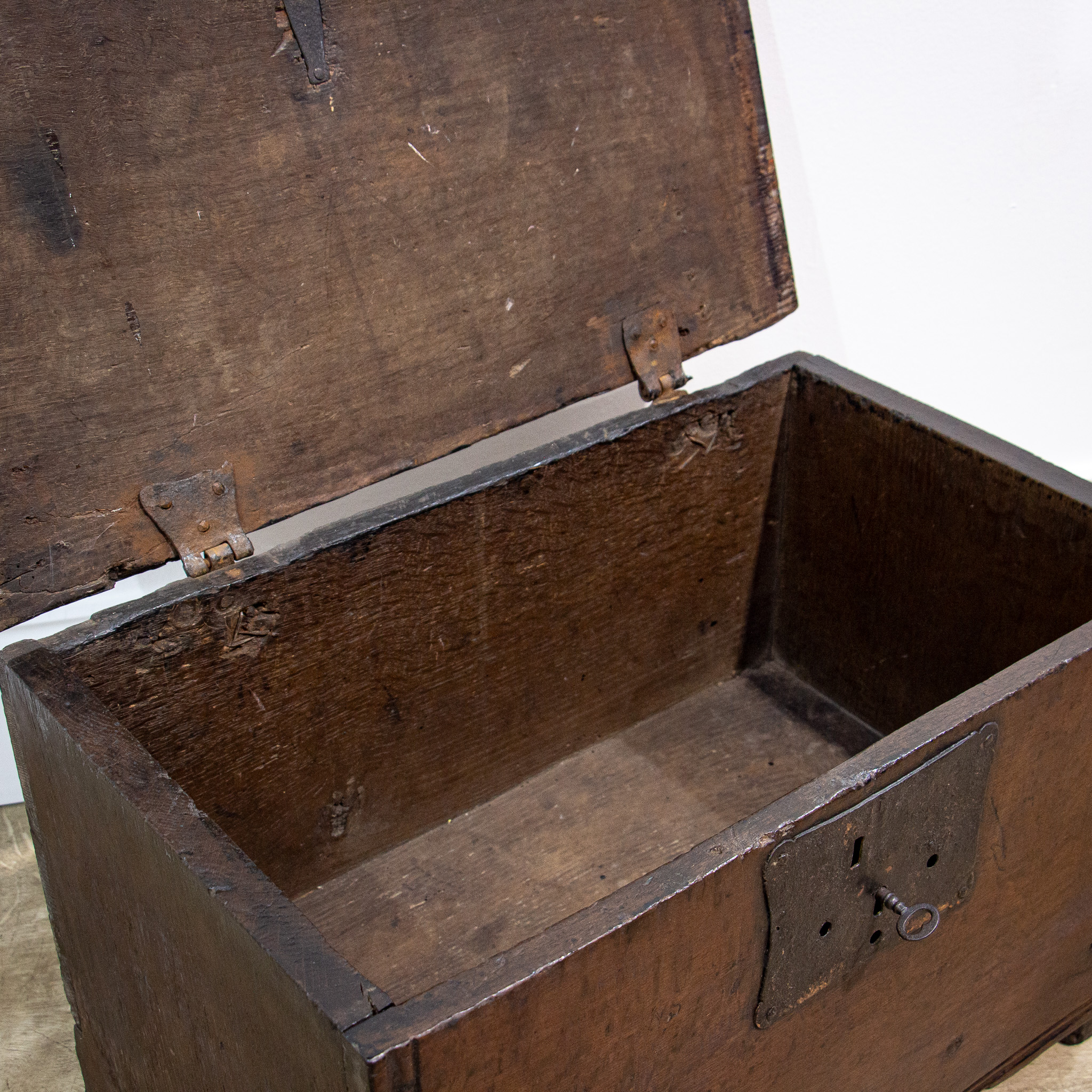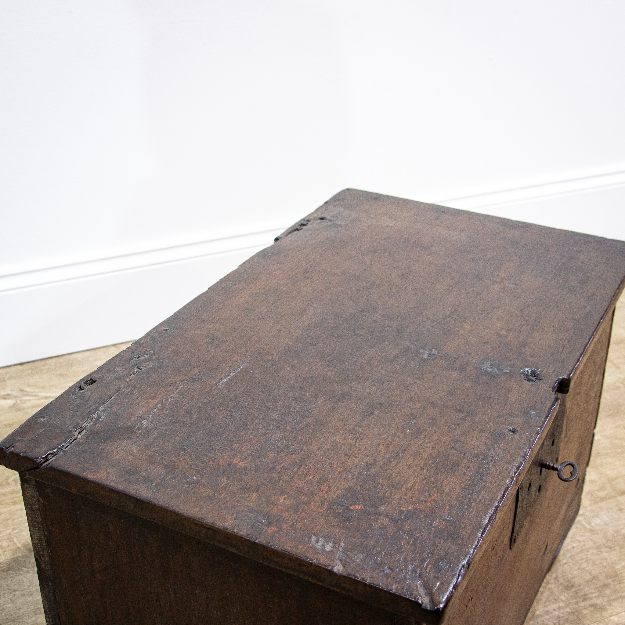 A true antique, this small oak coffer will have been used in a church and dates back to the Elizabethan period. Still having a functional use 400 years after it was first made, it is a charming storage piece which will evoke the past whenever it is opened.