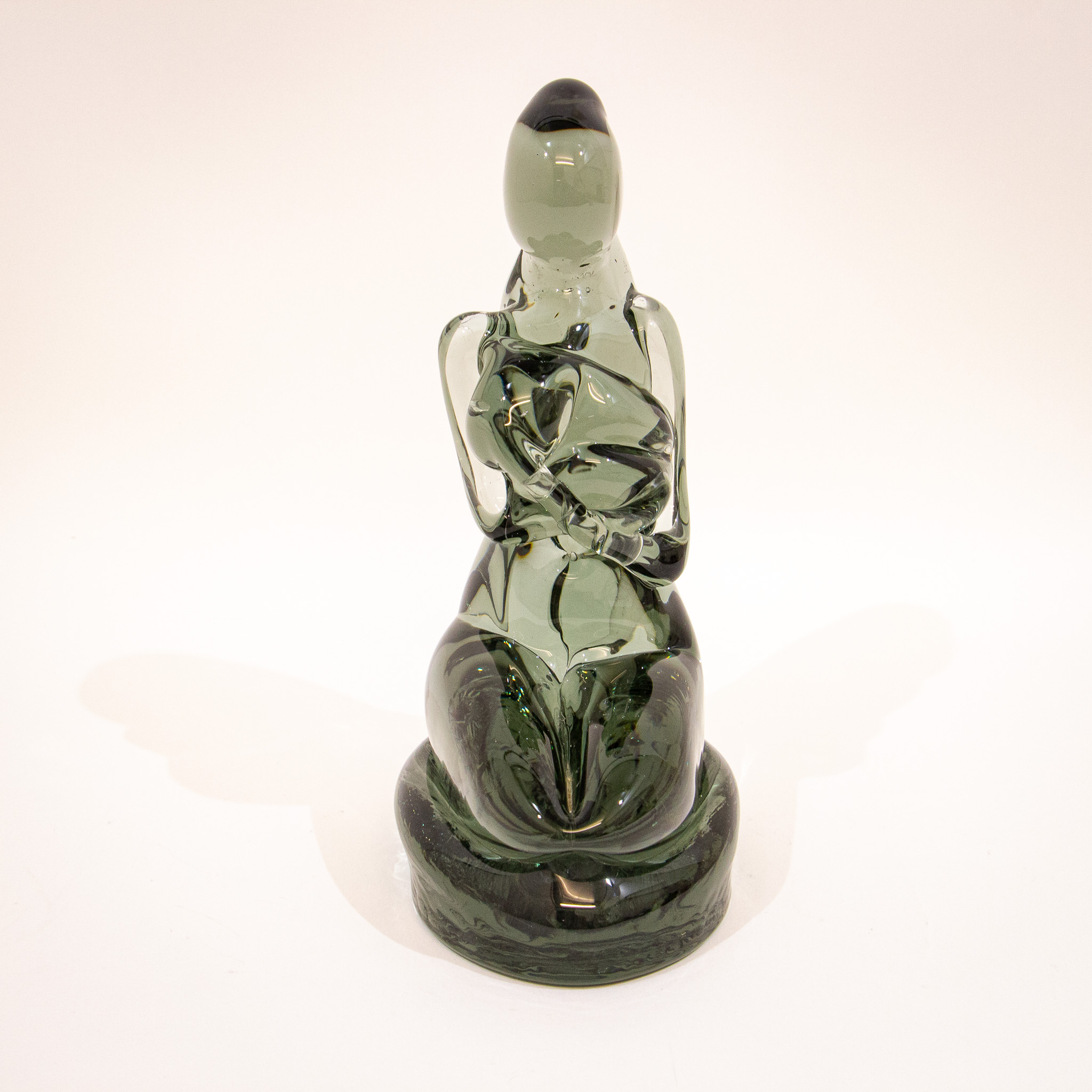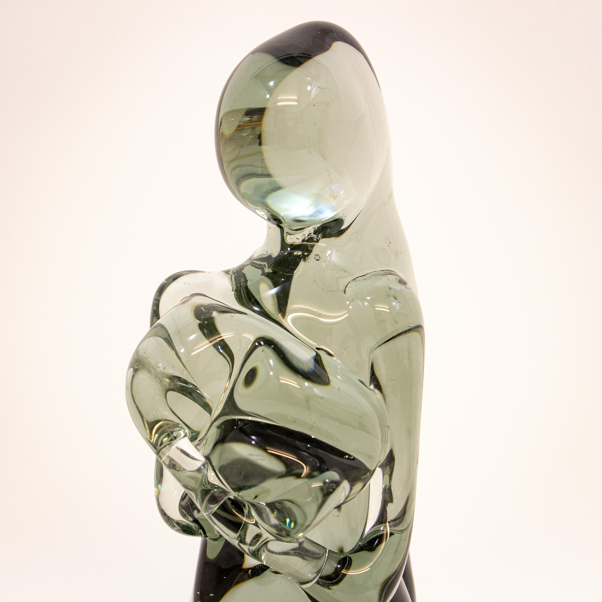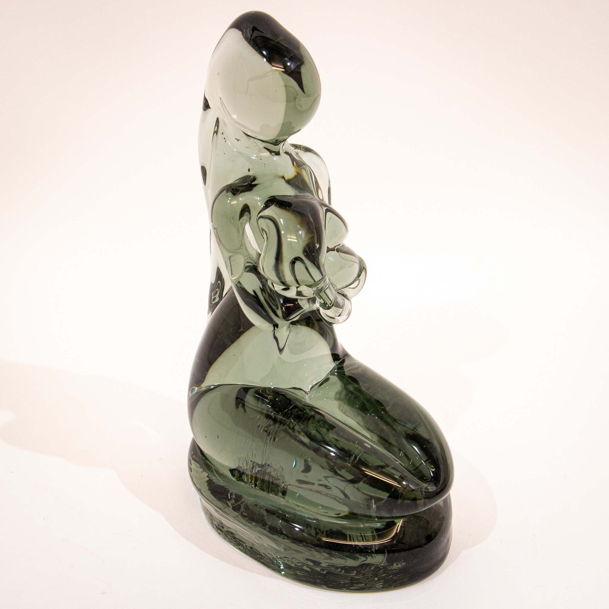 A stunning piece of artwork from the great Nason. The piece was created using a hot glass technique and has the colour of a smokey green. The wonderful natural form and texture of the glass shows why this artist from Murano was considered a master of his craft. Signature to base.