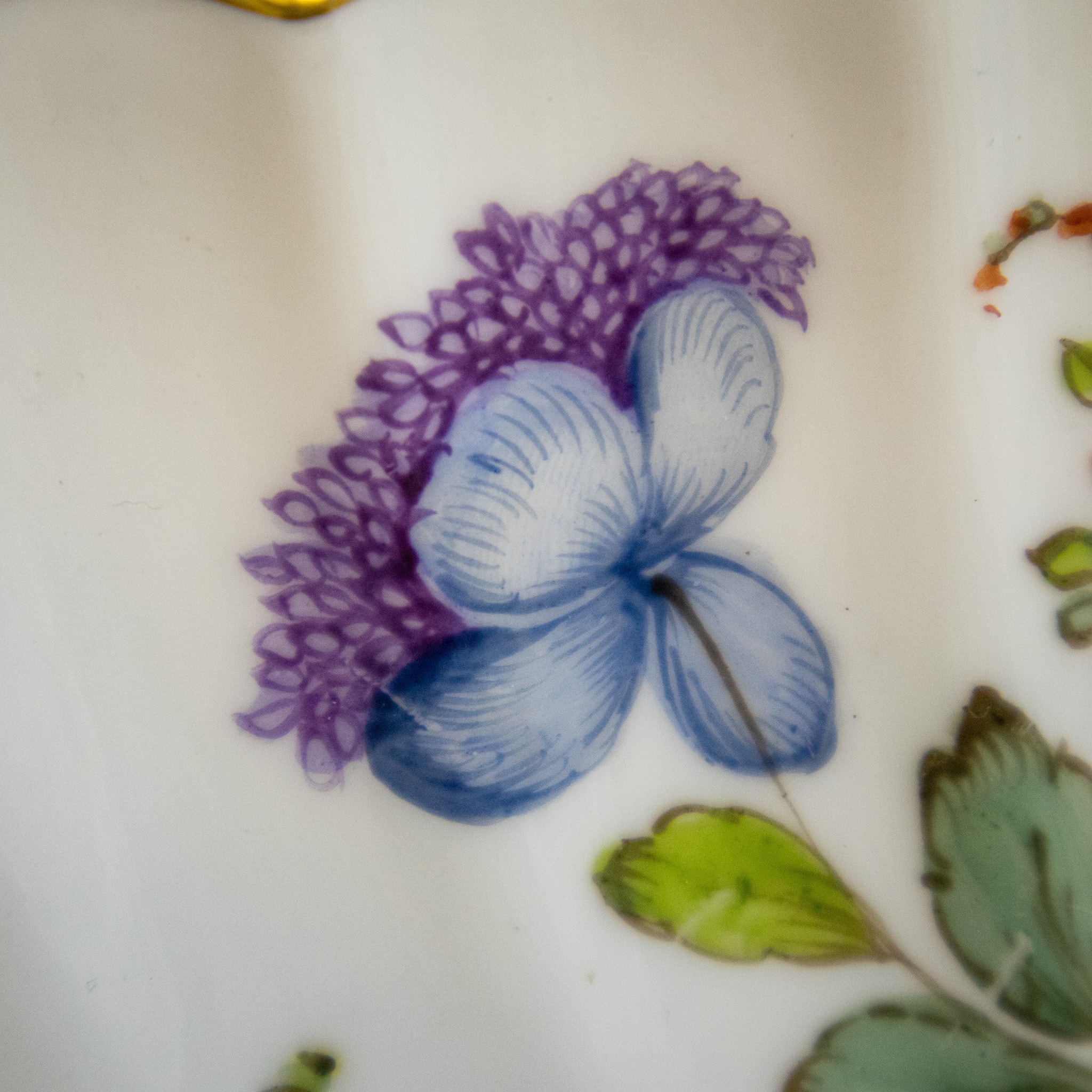 Large Oval Samson of Paris Bowl. A stunning and highly attractive bowl from the renowned Paris manufacturers. The bowl is oval in form with a gilded shell rim. The body is decorated with an abundance of pink, purple, blue, and red flowers and finished with a part gilded foot. The makers anchor mark can be found to the base. There is a small firing mark to the base, otherwise the piece is in good condition with only age related signs of wear.