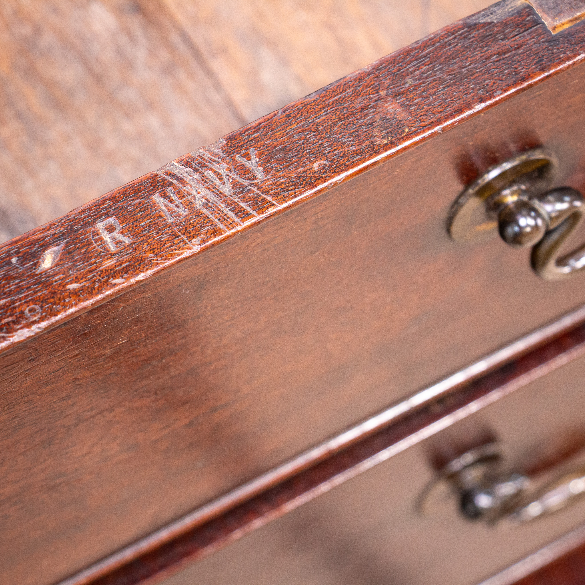 – Stamped “R Navy” and “J Phelps” in the inside edge of the top left drawer.