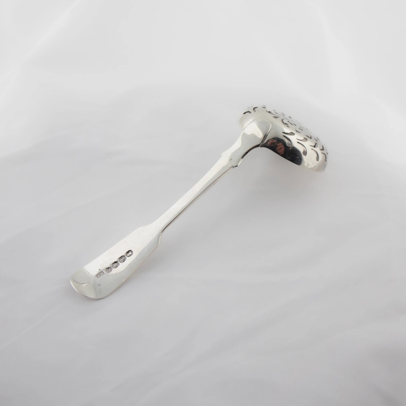 William IV Silver Sifter Spoon. A fine sifter spoon from the reign of William IV. Good quality with a nice gauge of silver and a sturdy pierced bowl. The handle has a monogram inscribed and the hallmarks can be found to the rear. Hallmarked for London 1831. Weight 39 grams. The piece is in good condition with only age related signs of wear.